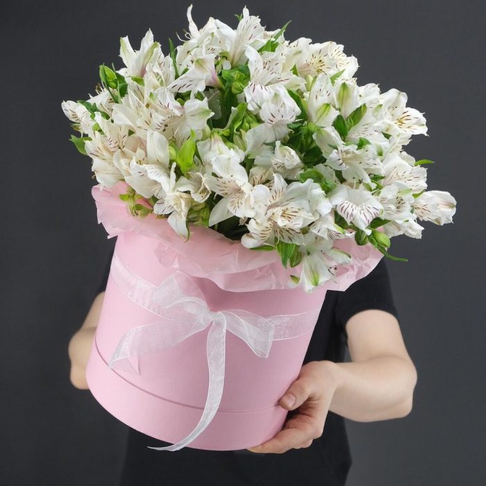 Большая коробка с белыми альстромериямм