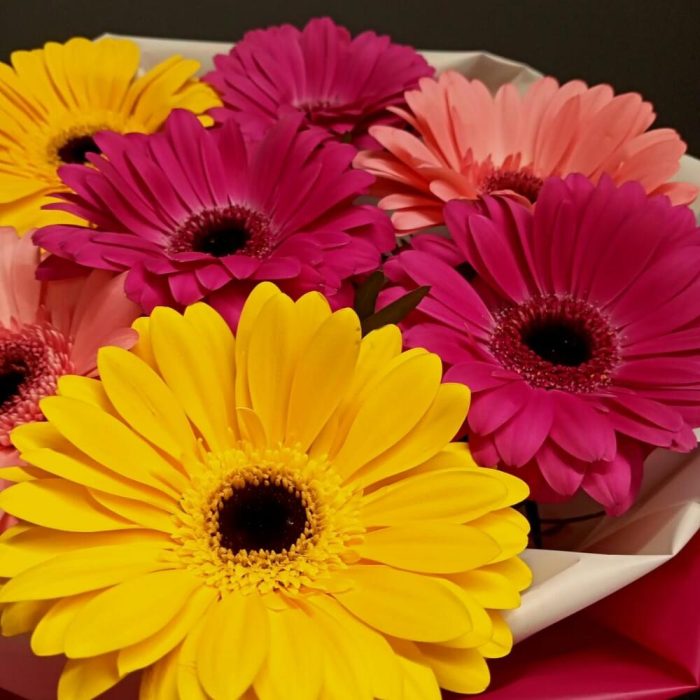 Гербера – 7 шт.зелень декоративная – 1 шт.Упаковка дизайнерская – 1 шт.