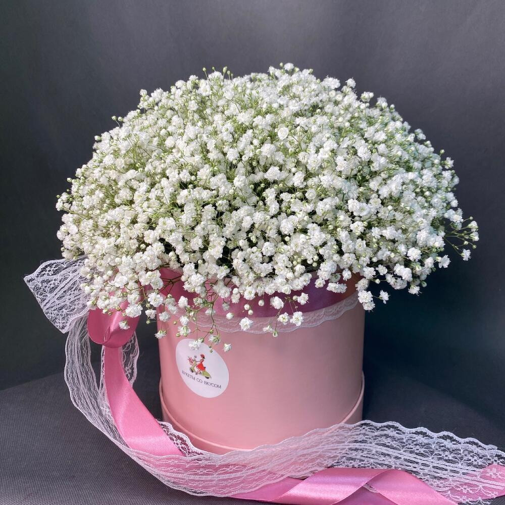 Гипсофила – 5 шт.Коробка шляпная – 1 шт.Кружево натуральное – 1 шт.