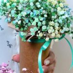 “Сиреневый туман” – композиция из гипсофилы в шляпной коробке