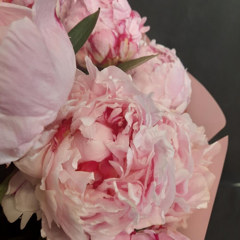 Букет розовых пионов в дизайнерской упаковке 9 шт