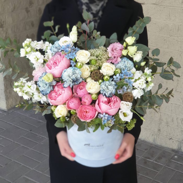 Категорий: Гвоздики, Диантус, Кустовые розы, Лизиантусы, Маттиола, Пионовидные розы, Розы, Эвкалипт