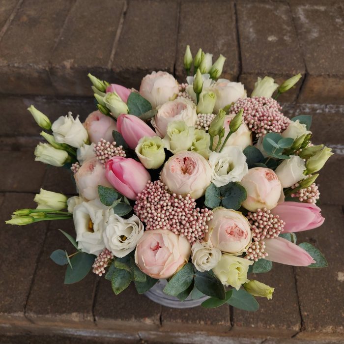 Гвоздики, Кустовые розы, Лизиантусы, Пионовидные розы, Розы