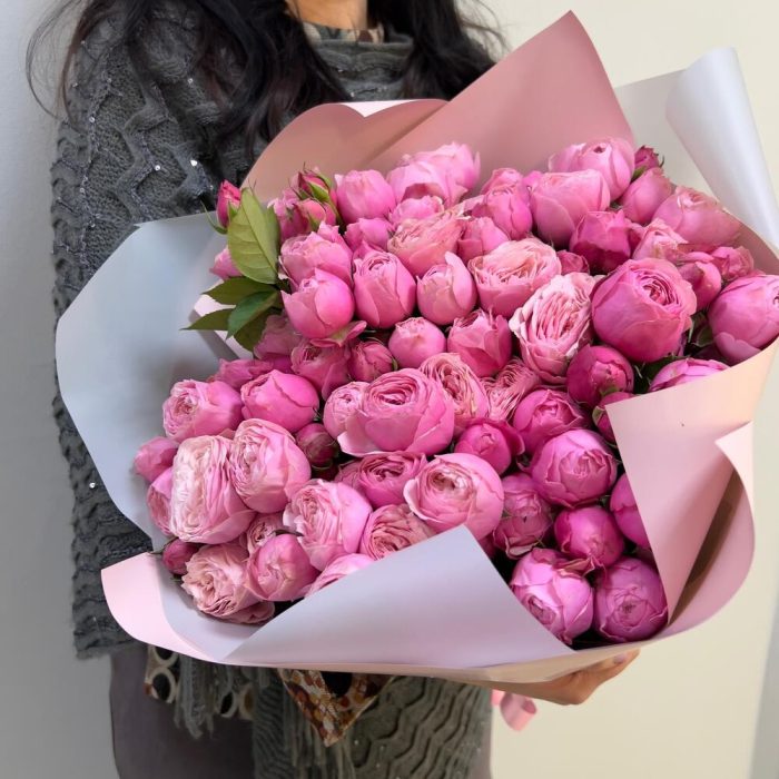 Пионовидная кустовая роза – 19 шт.Упаковка розовая – 2 шт.упаковка серая – 2 шт.