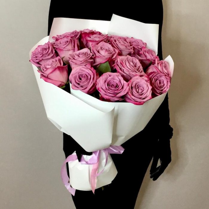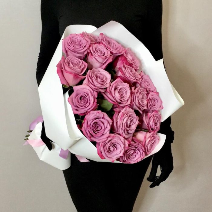 Лента атласная – 1 шт.Пленка матовая – 1 шт.роза модис блю – 19 шт.
