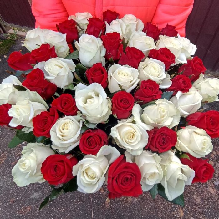 Лента атласная – 2 шт.роза россия 70 см красная и белая – 51 шт.