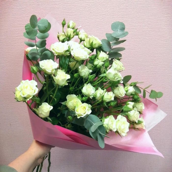Роза кустовая – 7 шт.Эвкалипт – 3 шт.Упаковка – 1 шт.