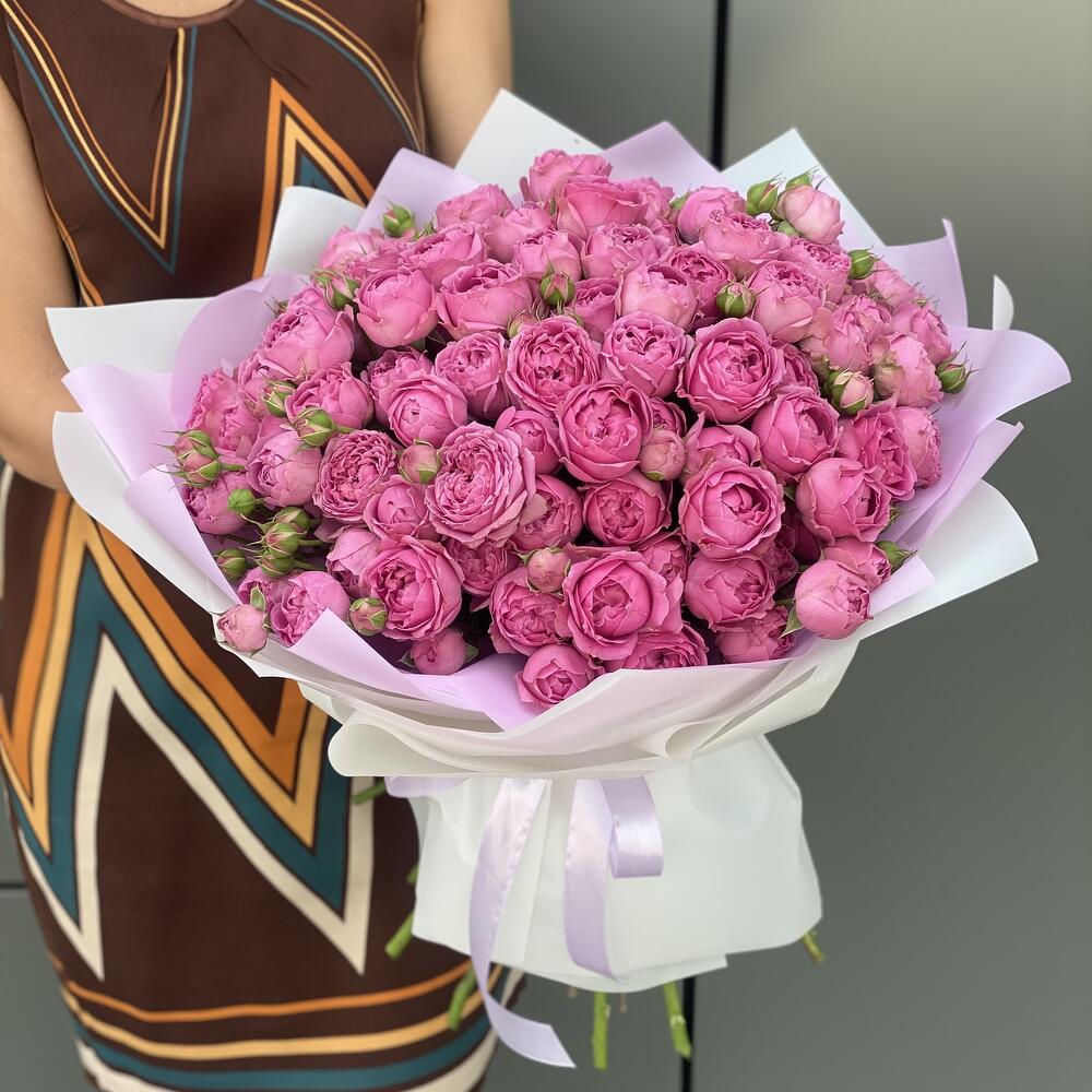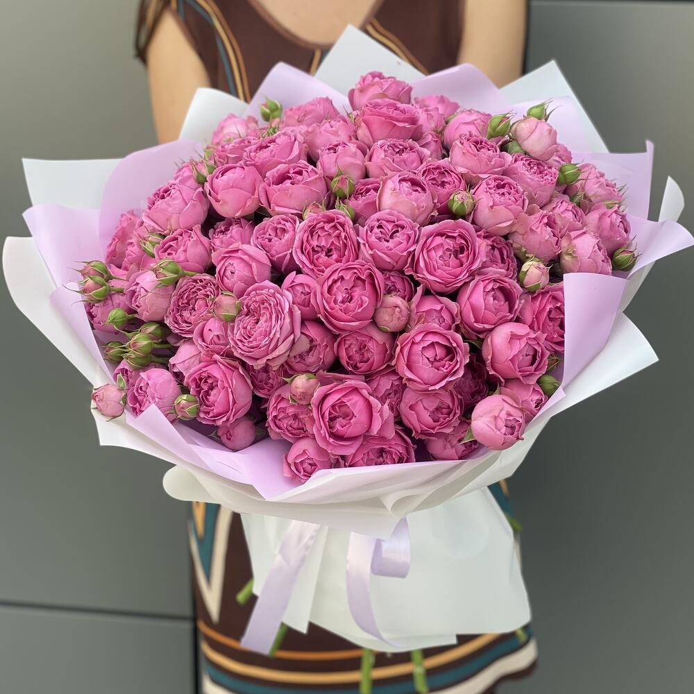 Букет из кустовых пионовидных роз в оформлении!
