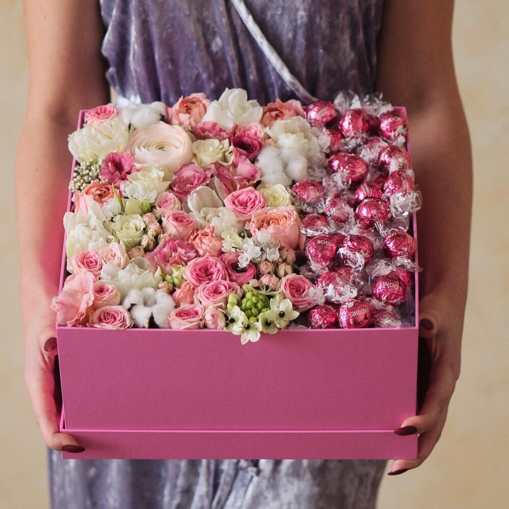 Коробка с цветами и конфетами