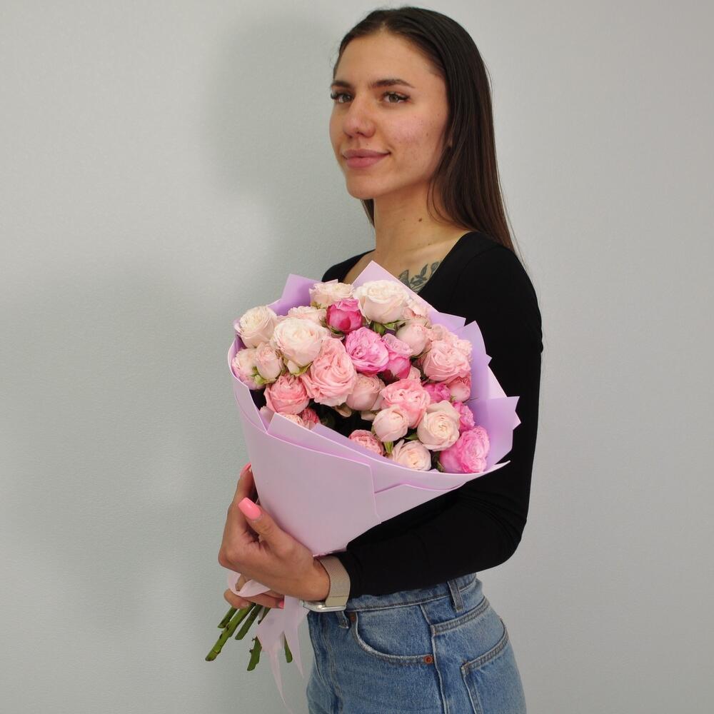Яркое кружево ароматных роз!Сочный монобукет из 9 кустовых пионовидных роз сорта бомбастик.Если Вы еще не знаете, что подарить любимой девушке, маме, учителю, бабушке или сестре, то этот букет станет отличным комплиментом, признанием или проявлением чувств!