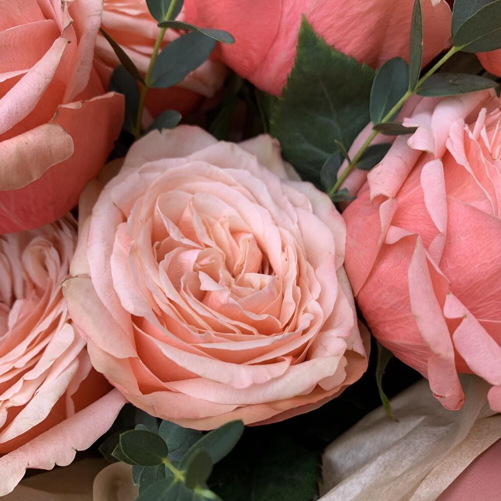 Гвоздики, Кустовые розы, Лизиантусы, Пионовидные розы, Розы