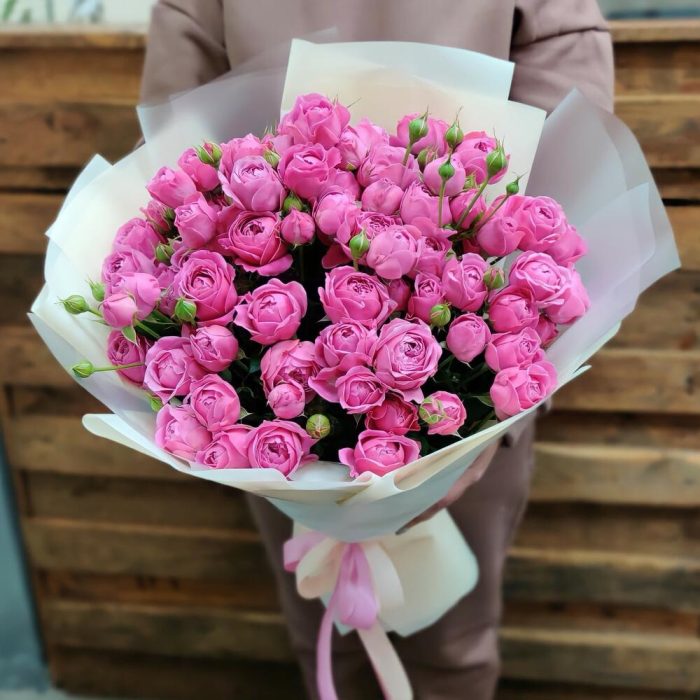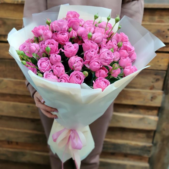 Лента – 1 шт. Пионовидная роза – 15 шт. современнаяя упаковка – 1 шт.