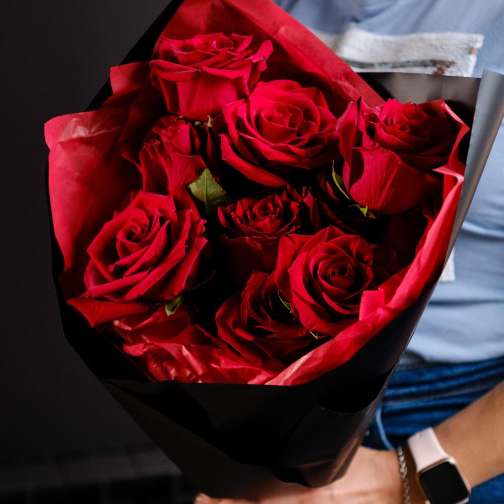 роза explorer – 9 шт.бумага дизайнерская – 2 шт.Тишью – 2 шт.Лента атласная – 1 шт.