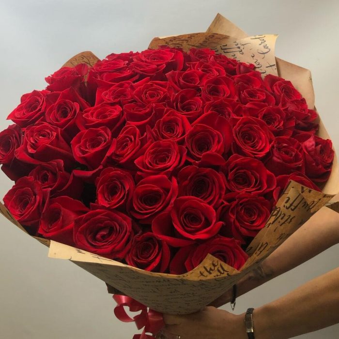 розы эквадор – 51 шт.Крафт – 2 шт.Лента – 1 шт.